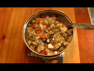 Clean and chop vegetables and put them into a large frying pan with one cup of water. Cut the tofu into cubes and spread over the vegetables. Sprinkle Braggs onto the tofu. Cook for 20 minutes and stir in the salt and olive oil.